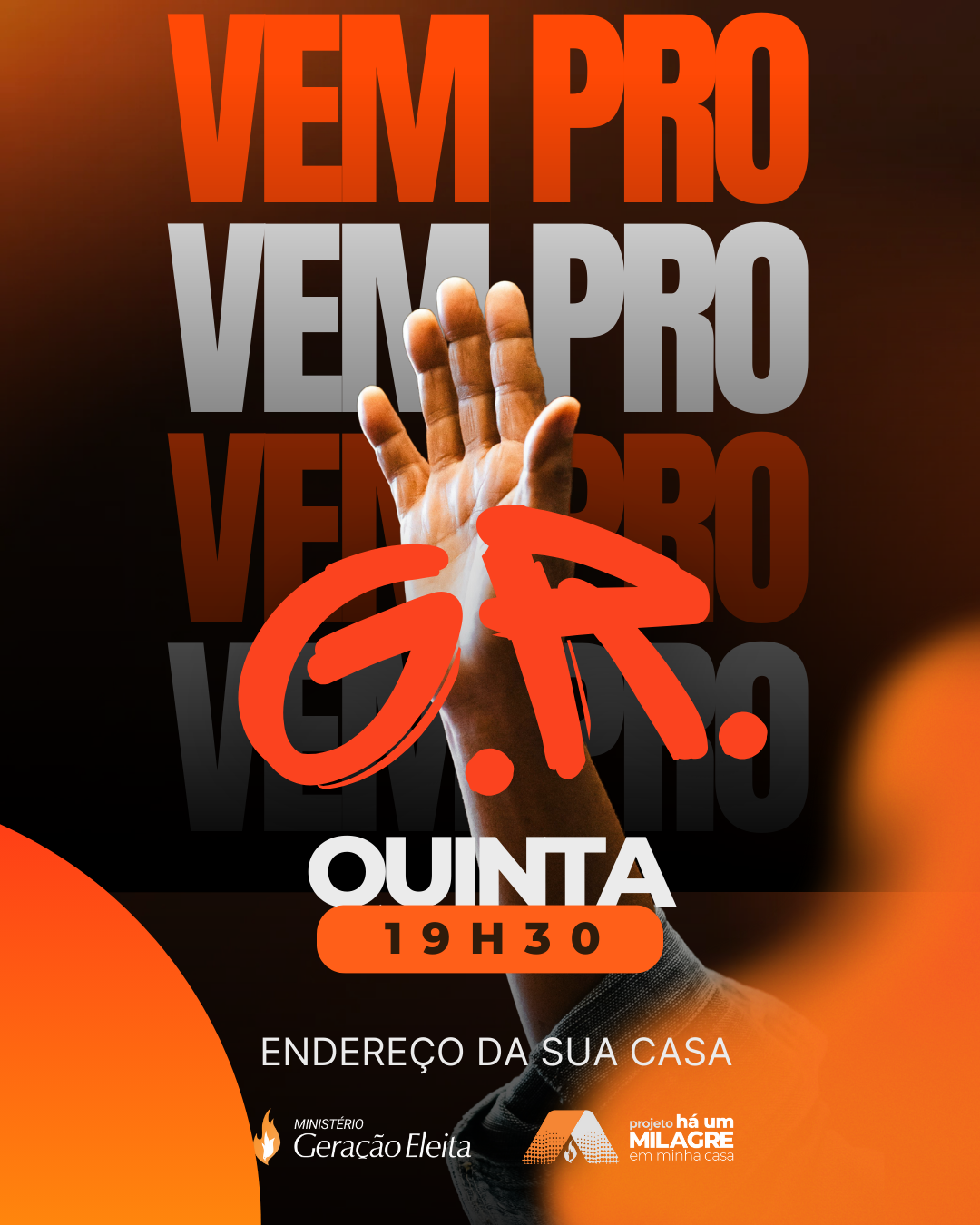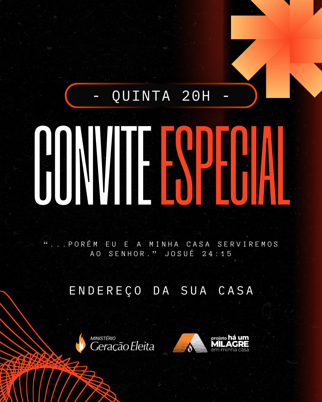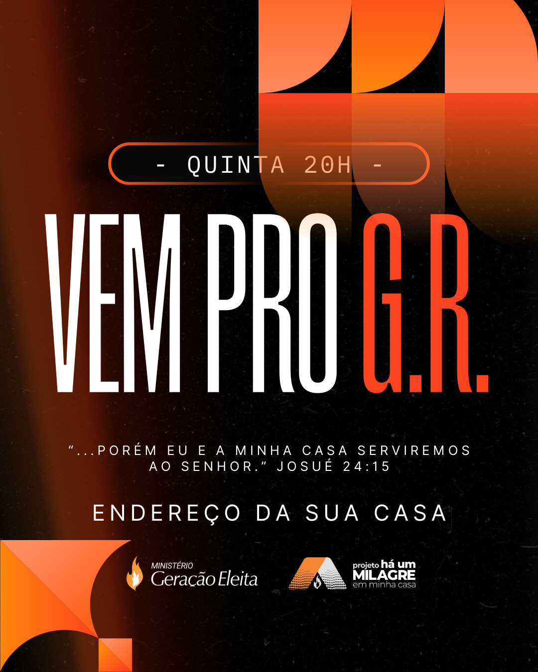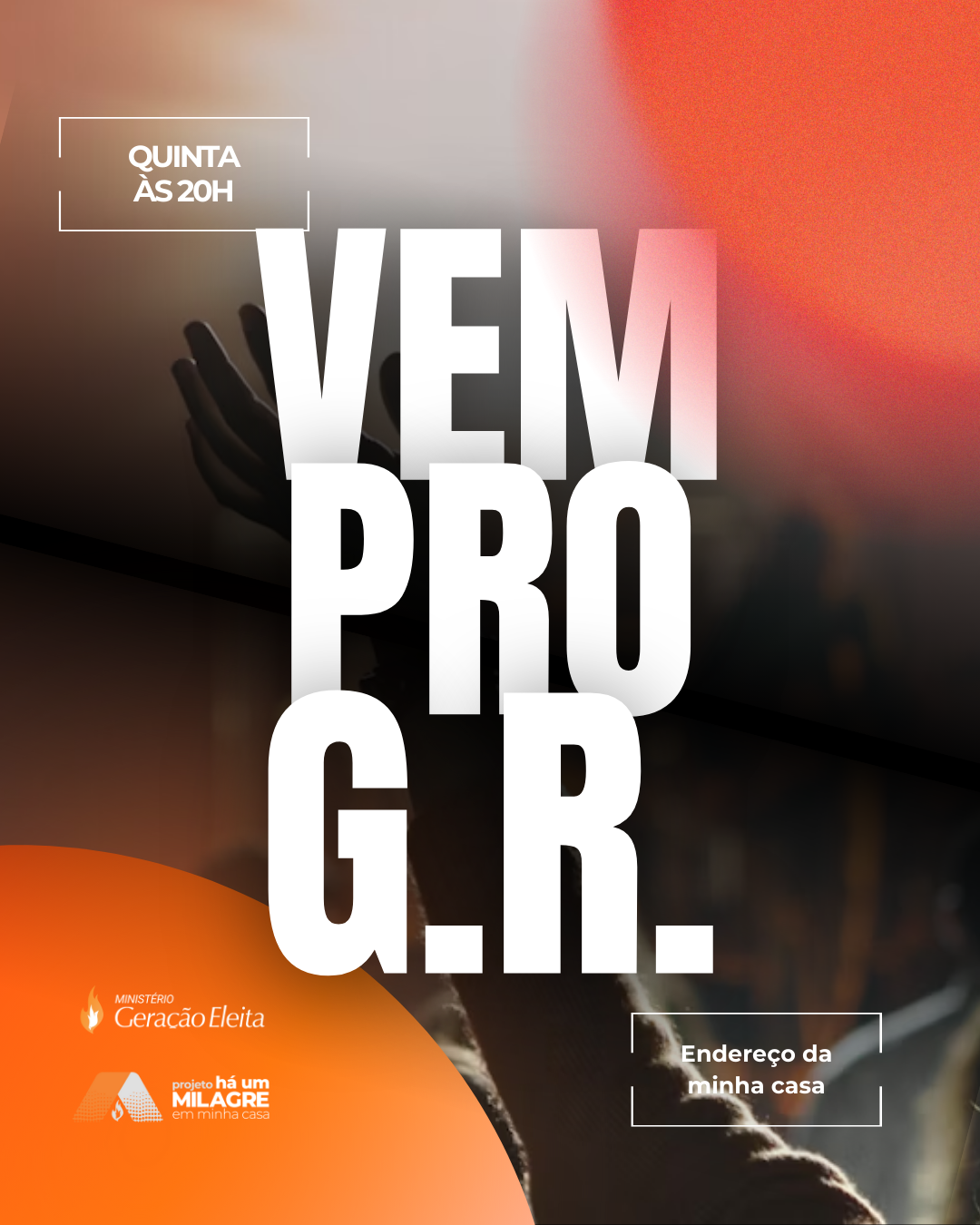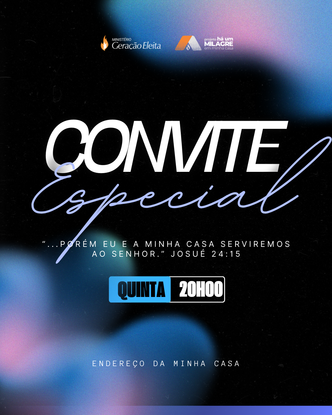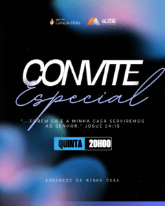 Usando o template você consegue criar rapidamente um convite para o seu Grupo de Relacionamento, basta mudar os textos de dia, horário, endereço, e voilá. Tudo pronto.